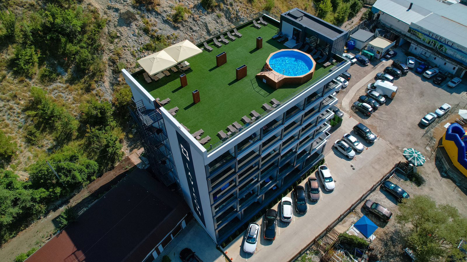 Апарт-отель Lavicon Apart Olginka расположен в бухте у моря, до пляжа можно дойти за 2 минуты. На верхнем этаже отеля есть бассейн с шезлонгами и зонтами, откуда открывается вид на море.